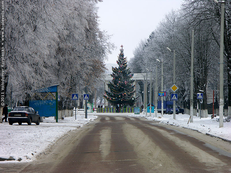 Вулиця Комуністична. Вдалині - Новорічна ялинка, що на площі Свободи. Кролевець, Сумська область